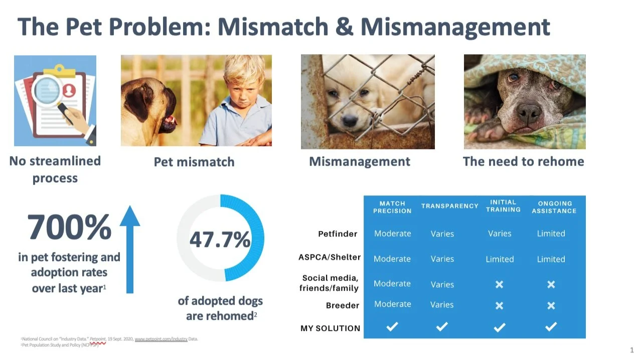 Determined the need for a streamlined pet adoption process and pet training platform to address the problem of mistreatment and rehoming